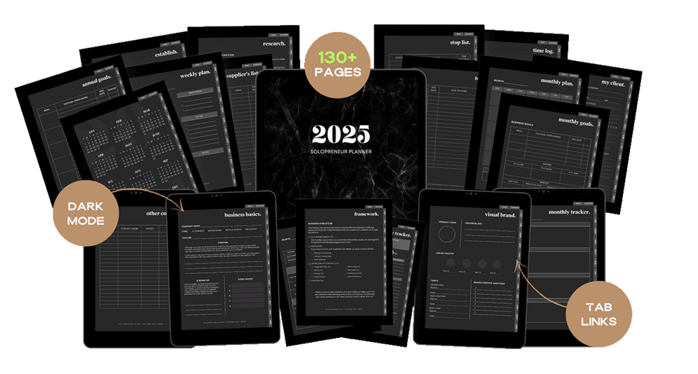 Get the quick start planner to help you design your dream brand as a solopreneur, create your online business, and launch it in less than seven days. Go from idea to launch so you can call yourself established and (maybe) ✨ self-made.